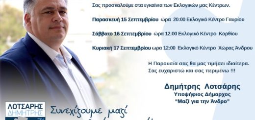 Ανοιχτή συζήτηση με θέμα “Το μέλλον της Ανδρου – Προτεραιότητες του Τοπικού Πολεοδομικού Σχεδίου για μια Δίκαιη και Βιώσιμη Ανάπτυξη” 8/10/2025 – 18:00, Επιμελητήριο Κυκλάδων, Βακόνι Ανδρου Δείτε το βίντεο: